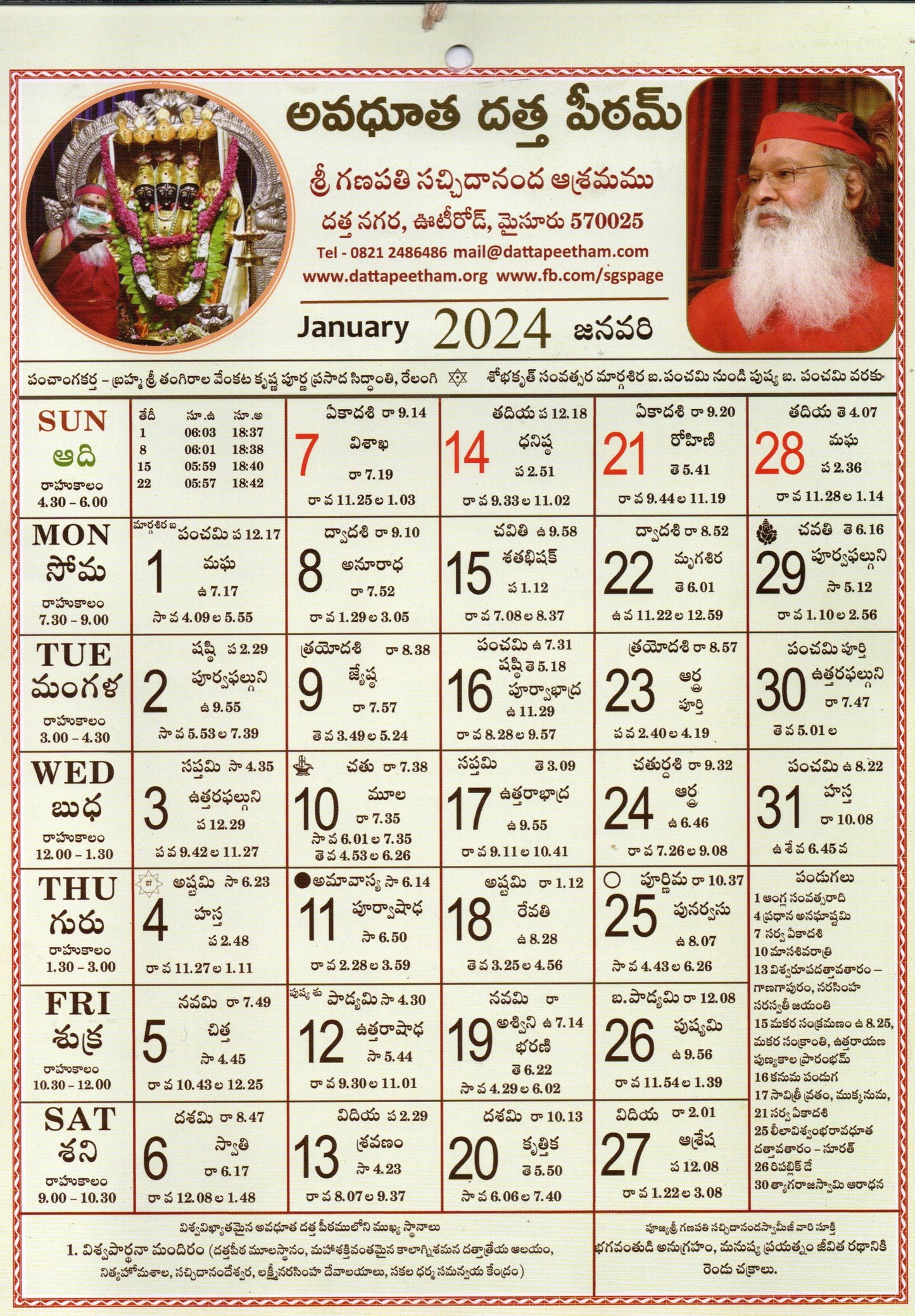 Dattapeetham Calendar 2024 (Telugu) โ Raga Ragini Store